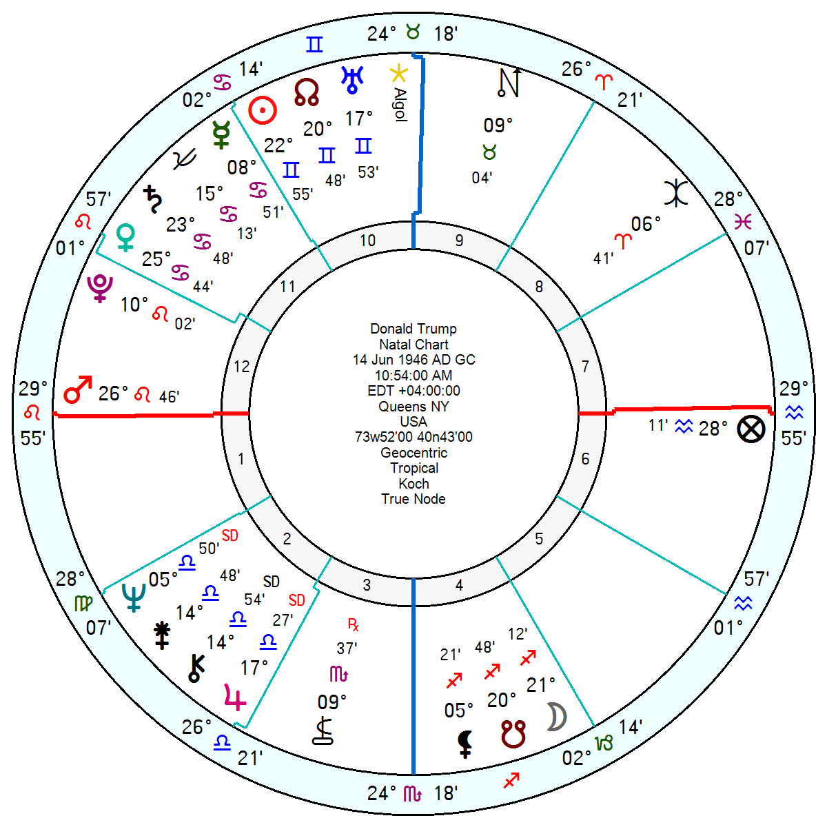 BB is a Sun Pisces with a Pisces/Aquarius Moon. He has an intense North Node conjunct Pluto in late Scorpio which squares Mercury giving him strong opinions. His Pluto North Node also square a hard-edged Mars Saturn (Moon) in Pisces which will give him a deep reservoir of anger about unfair treatment. His Pluto opposes Trump’s Midheaven and squares DT’s Mars for a mighty, never-give-in clash. BB’s inventive and highly-strung, generational Uranus Neptune also oppose DT’s Saturn Venus in Cancer for a clash of values. And BB’s short-fused Mars Saturn falls in DT’s 7th house.