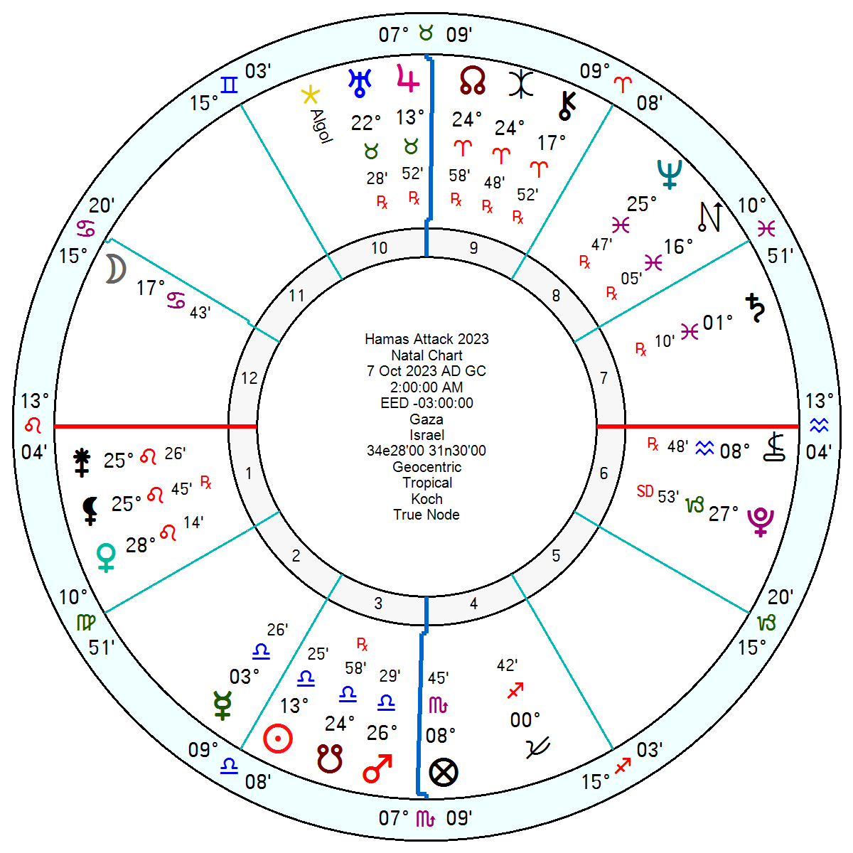 Turkey which is desperately trying not to get dragged into the mess had the recent Lunar Eclipse opposition its midheaven and Uranus; and from late this month has tr Pluto square its Scorpio Sun, on and off till late 2027 so will be facing challenging conditions.