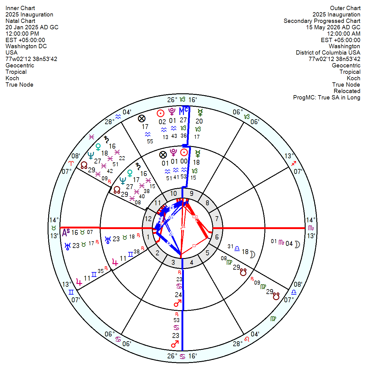 The 2025 Inauguration Trump Second Term chart, starting on a do-or-die-determined, ruthless Mars opposition Midheaven Sun Pluto square a 6th house Libra Moon always did look as if it would peak in its bullying approach in February/March this year as the Progressed Moon moved to square the Sun Pluto and Progressed Pluto by mid May this year and will lessen in effect thereafter. Before then the Trump Administration will be facing an extremely anxious April with two Neptune midpoints catching a hard square from tr Uranus bringing crises, sudden upsets, weakness, mourning and even more indications of confusion and off-the-wall meanderings from fantasy land.
