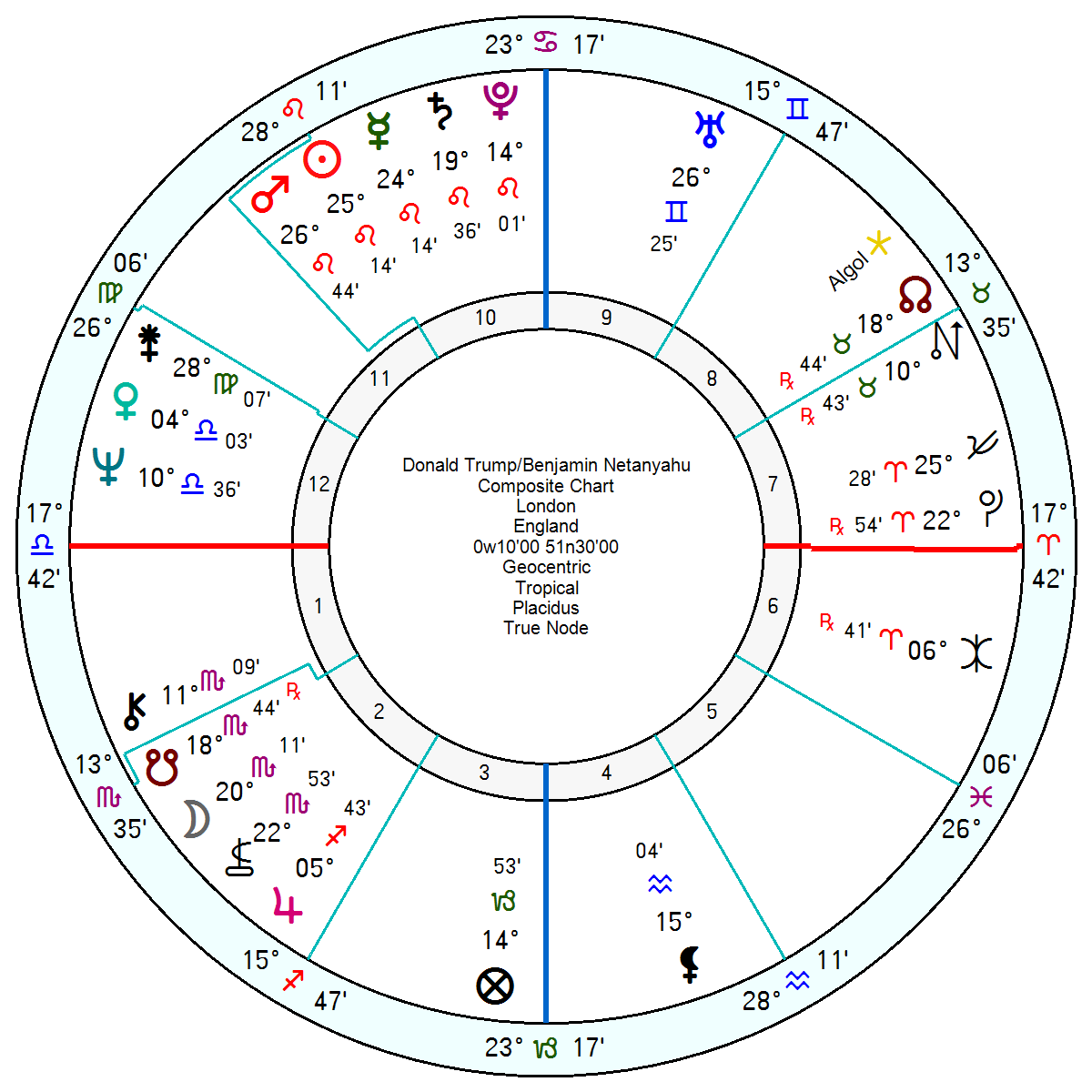 Trump’s relationship chart with Netanyahu has been showing their joint power drive being undermined through March; but it is late May to mid August which will be most noticeably undermining and disappointing for their association with tr Neptune opposition the composite Venus and square the composite Saturn, which repeats into 2027 – so there will be a distancing.