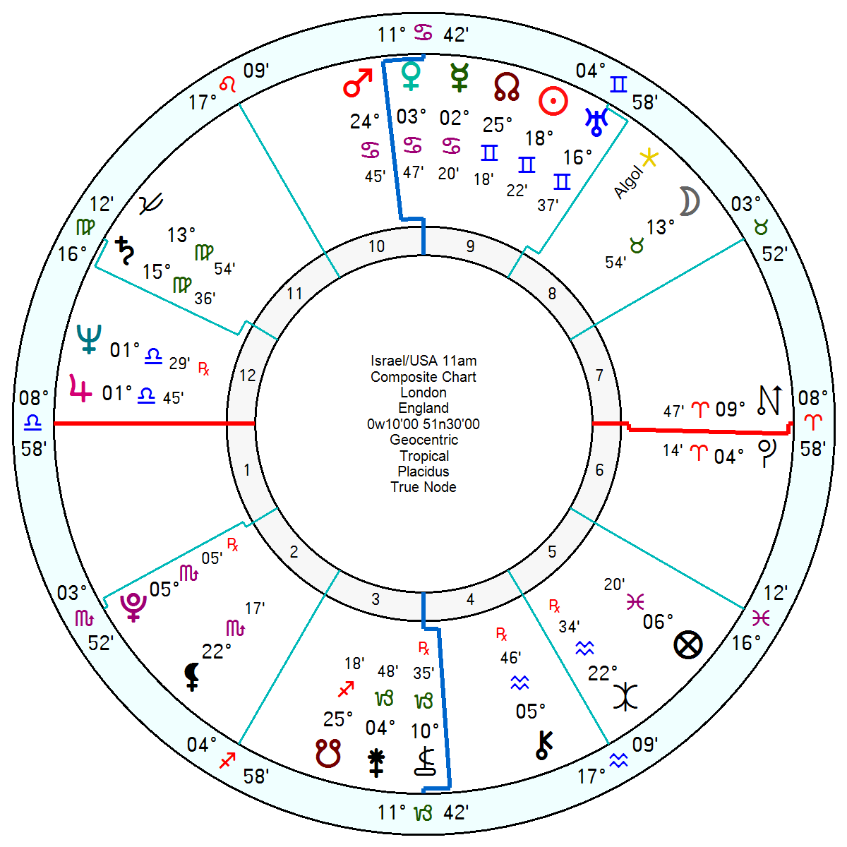 The USA/Israel relationship chart has been undermined since tr Neptune Saturn moved into Aries opposing the composite overly-hopeful Jupiter Neptune and square the Mercury Venus from late this month to late May – and that lessening of friendly feeling extends into early 2028. Where it reaches total rupture point will be around 2029/30 as tr Uranus squares the composite Sun and opposes the composite Uranus Sun.